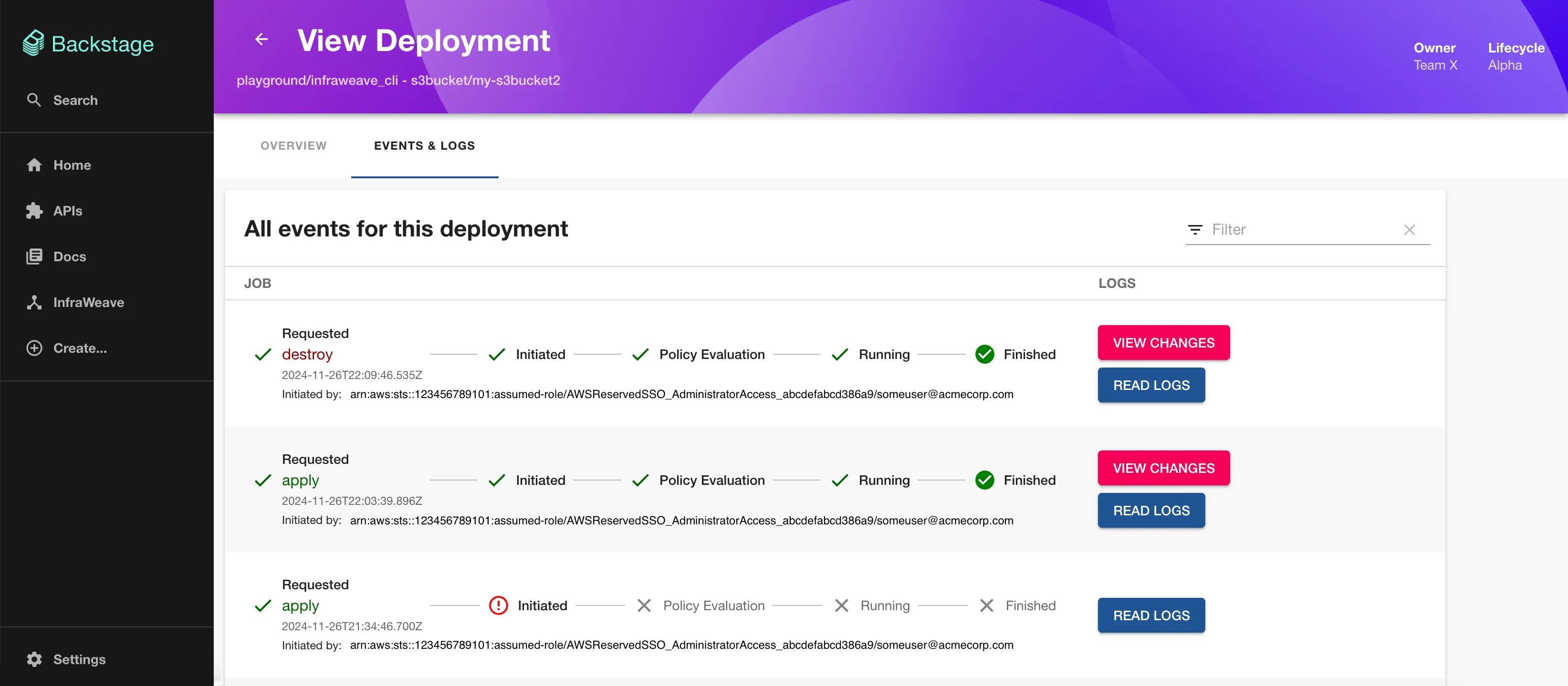 Combined with Backstage you can swiftly view the history of a deployment and exactly what changed for a specific job run.